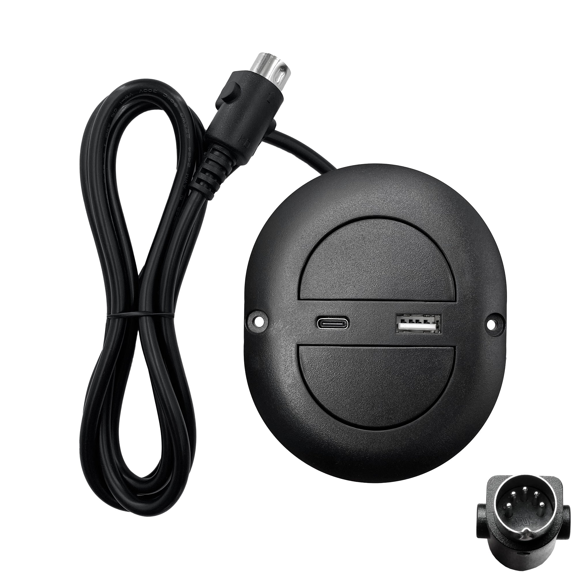 This is universal oval 2 button 5 pin power recliner switch replacement with USB type A and C port. It control the chair up and down, you can use on the recliners and lift chairs motor that use the 5 pin round plug. The switch has USB Type A and C Port, which can charge the phone and pad at the same time, the output is 5V 2A.