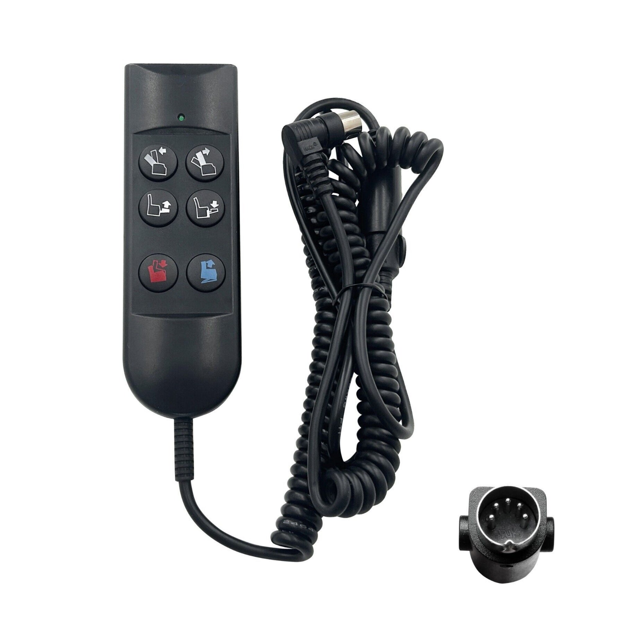 This is 6 button 5 pin lift chair remote replacement for up and down. The hand control can replace Golden PR-502, PR-505 infinite position lift chair ZK756HCL and many different brands of lift chairs remote.