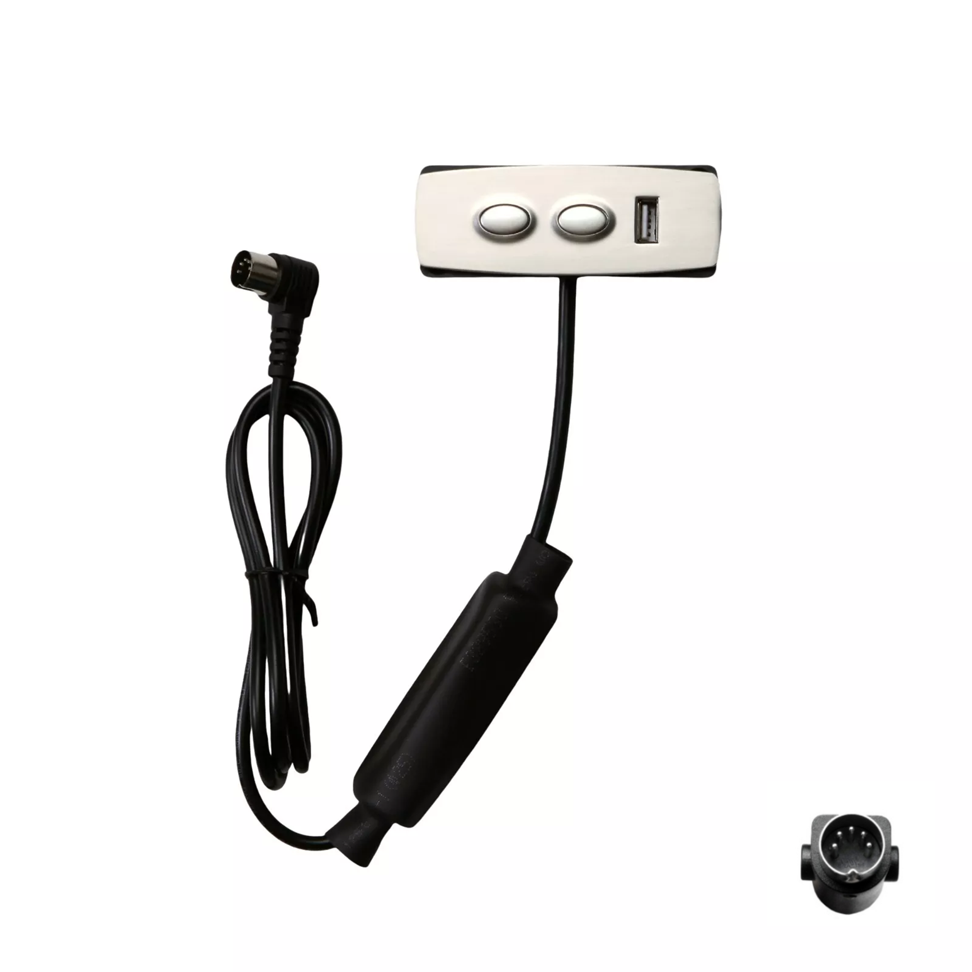 This recliner switch has zinc alloy pane with 2 buttons that have usb. The USB charging 5V 2A at hand control for charging a cell phone, etc. You can use on many different brands of recliners and lift chairs that use the 5 pin round plug, such as Okin Limoss Lazboy Pride Catnapper etc.