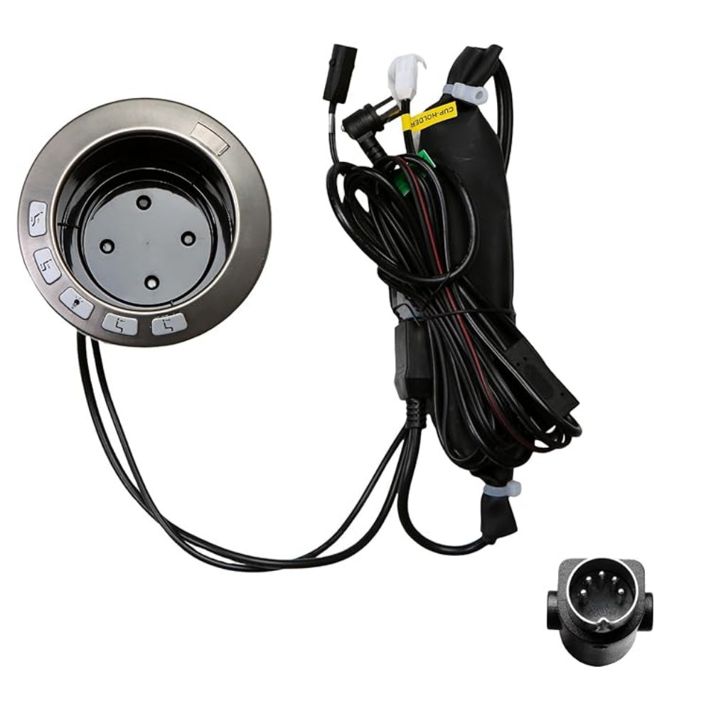 This is raffel systems theater cup holder model CHB R2ULBA 01 MW replacement. This control both the power headrest and power recline features of your chair. It has 1x 5 pin male connector and 2x 2 pin female connector. The cup holder with usb and light, you can charge your phone.