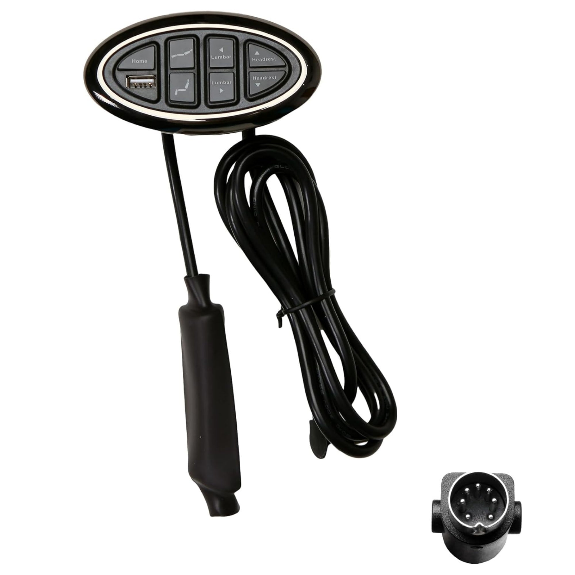 This is okin 7 button 7 pin switch model JLDK.15.07.10 replacement with usb. The switch operates the headrest back/forth, lumbar back/forth, chair raise/recline. It switch has USB Port, you can charge your phone.