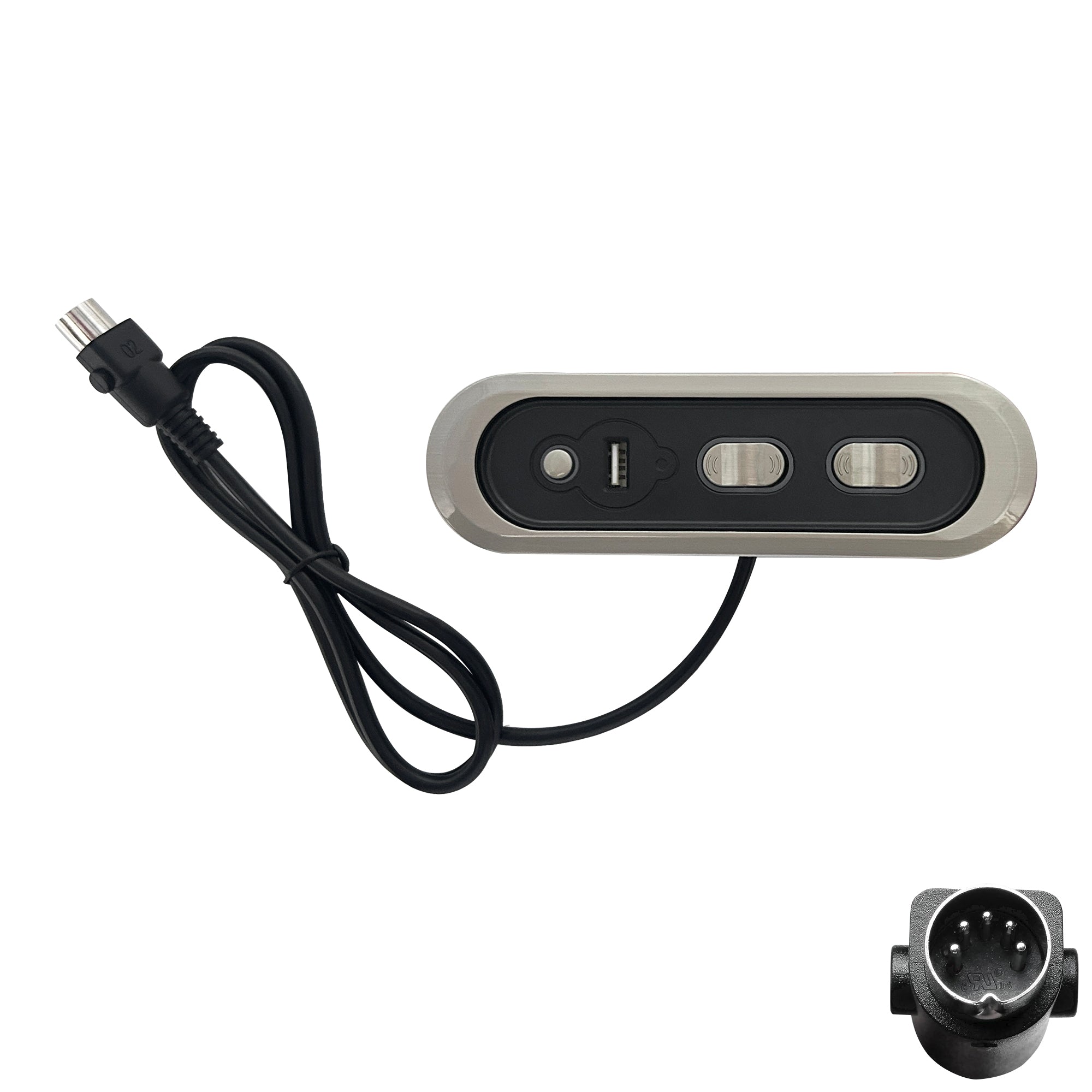 This is mulin switch model MLSK65-A4 5 button 5 pin switch replacement. It has 5 buttons, which are suitable for power recliners or lift chairs with two actuator motors. The switch has 5 pin male plug, it connects to the footrest motor, can replace mulin switch model MLSK65-A4, verify the model number before you purchase.