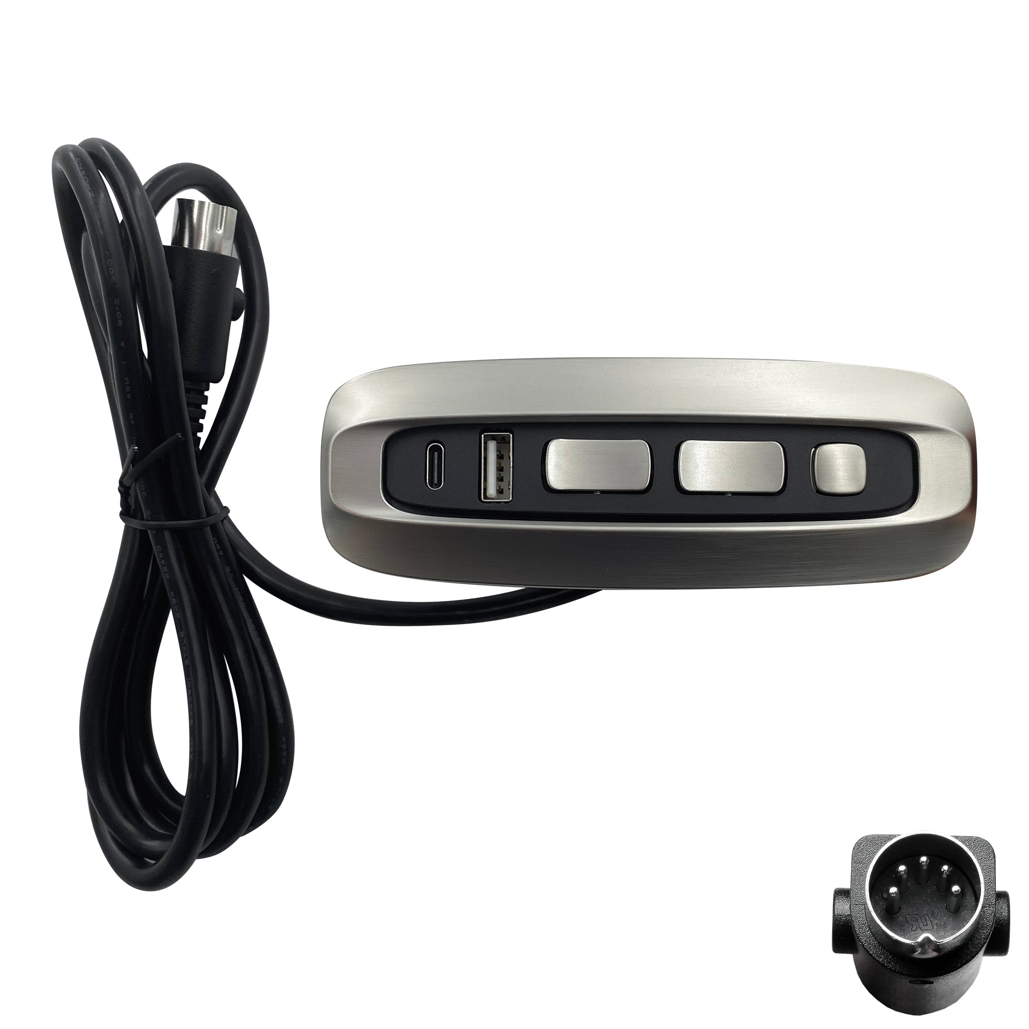 This is okin 5 button 5 pin switch model FS.04.05.01 replacement with usb a c ports, you can charge your phone and pad at the same time.