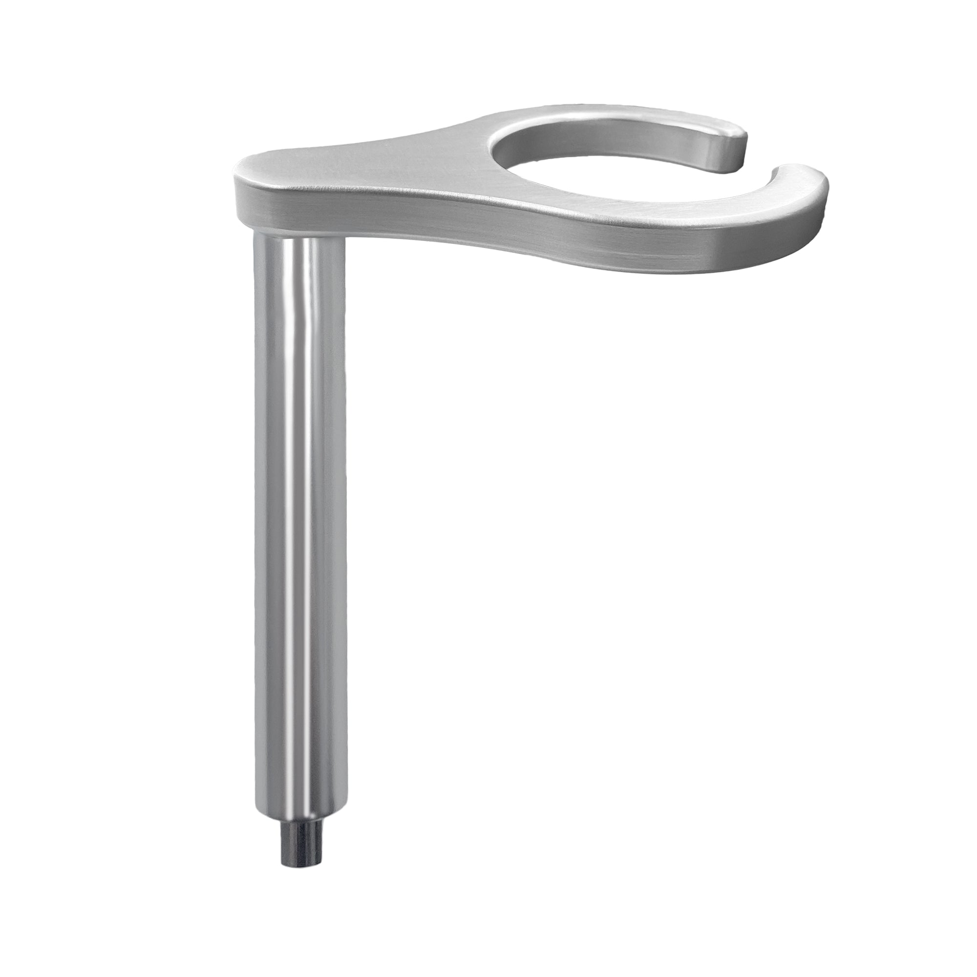 This is raffel sytems glass holder model PAS WGH EXT 01.The wine glass holder is constructed of 100% aluminum with a smooth and elegant finish. To use, simply slide the cylinder post into the octane accessory Dock. The handle offers a gentle curved design that fits most wine glasses securely and safely. The aluminum post rotates a complete 360 degrees, is extremely stable, and is easy to clean and maintain with just a wipe of a damp cloth.