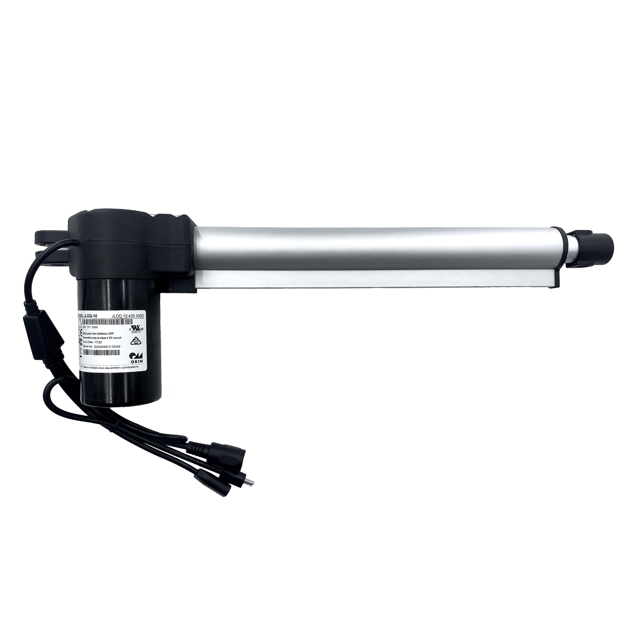 This is power recliner okin motor model JLDQ.10.435.250D replacement. It has 3 cables, the 2 pin flat round male plug connects to power transformer, the 5 pin female plug connects to hand control and the 2 pin flat round female plug connects head motor.